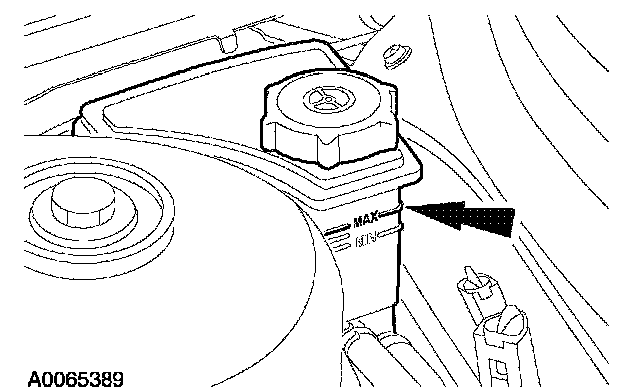 Fill the power steering fluid reservoir to the MAX mark with power steering fluid.