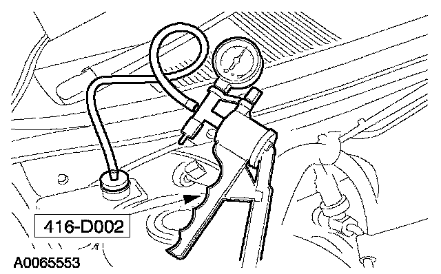 ^ Switch OFF the engine and apply a vacuum of 51 kPa (15 in-Hg). Maintain the vacuum (minimum of five minutes) until the air is evacuated from the system.