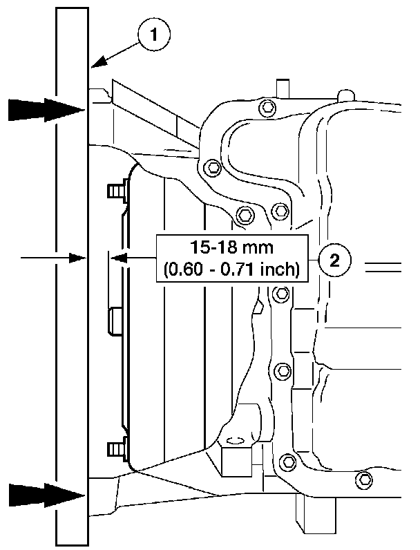 2. Check the installation depth between the transaxle flange and the torque converter centering spigot for the correct clearance.