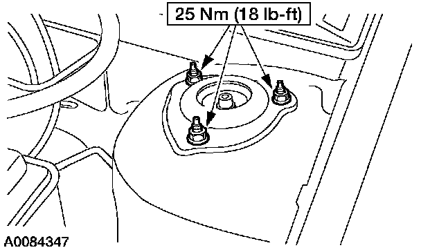32. Tighten the LH strut and spring assembly top mount nuts.