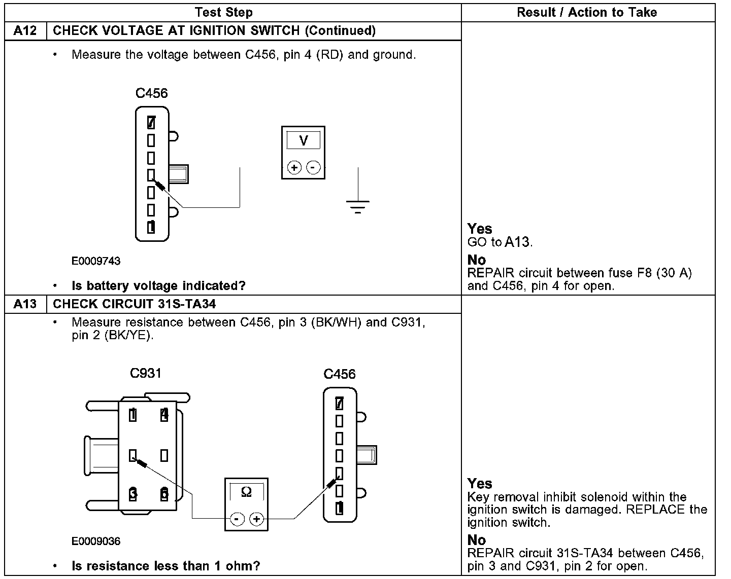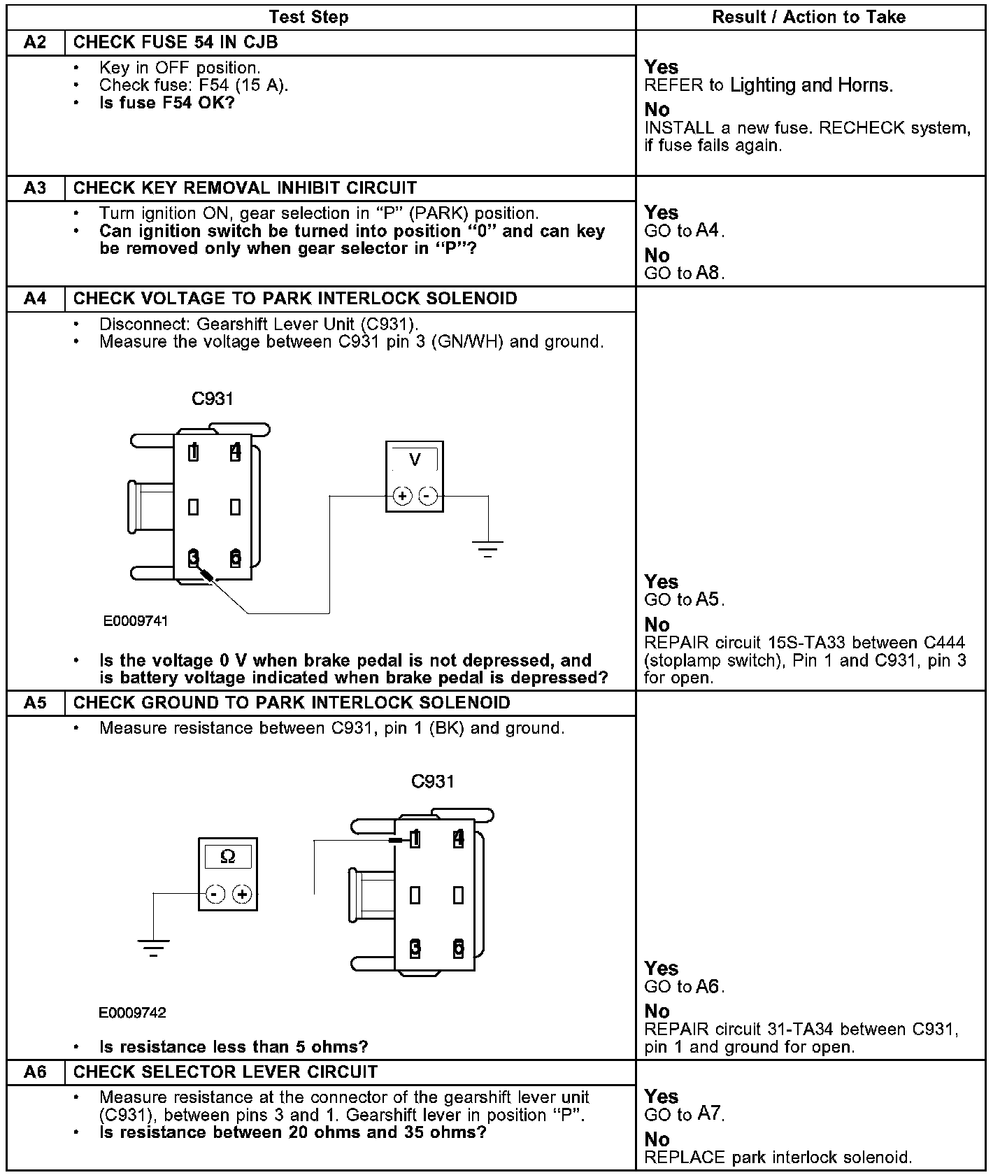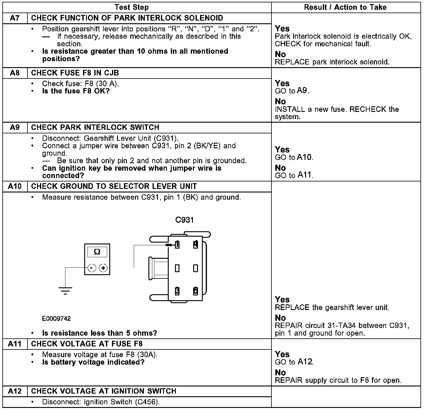 PINPOINT TEST A: THE SHIFT INTERLOCK SYSTEM DOES NOT RELEASE/LOCK PROPERLY/IS BLOCKED
