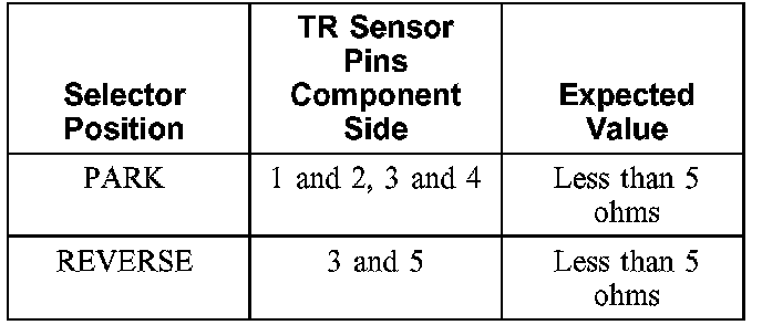 Transmission Range (TR) Sensor Diagnosis Chart