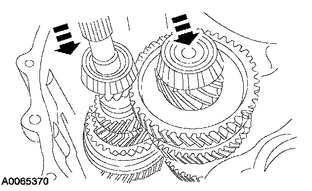 7. Assemble the input and output shafts together and put them in the transaxle case as an assembly.