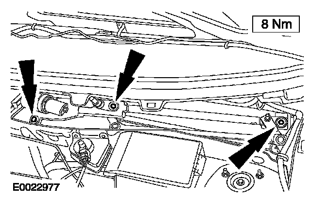 7. Remove the bolts and the windshield wiper motor.