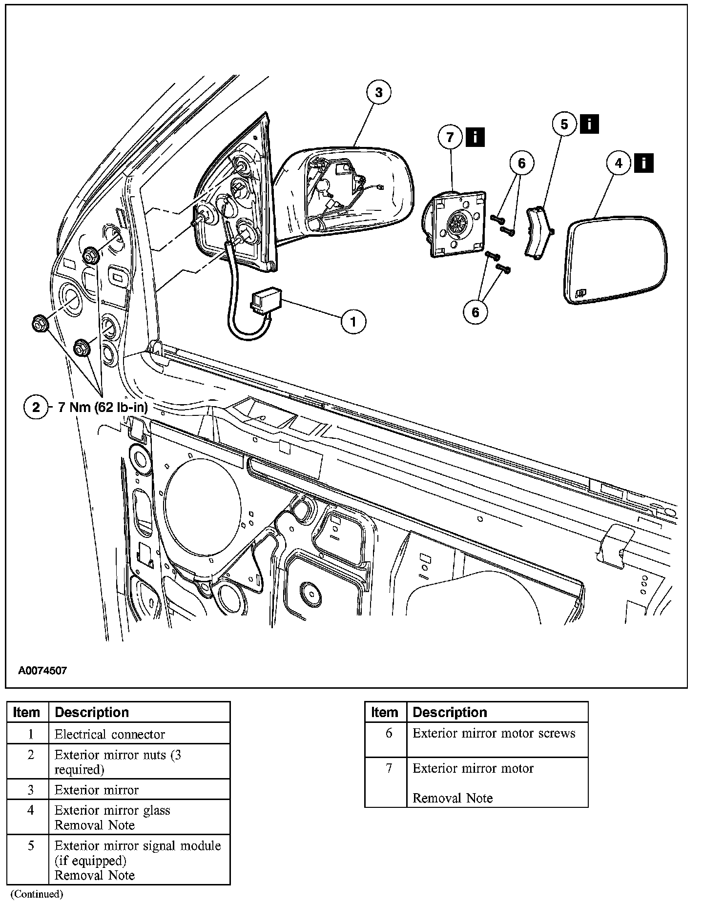 2. Release the exterior mirror glass from the upper portion of the exterior mirror motor and then lift upwards to remove the glass.