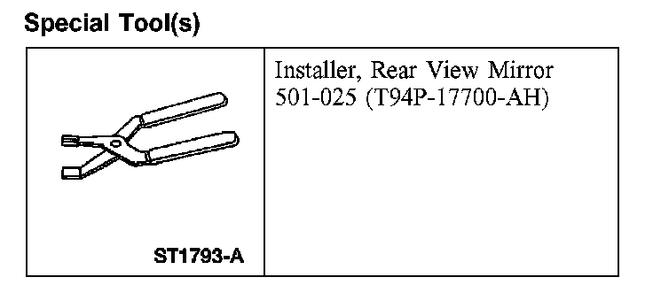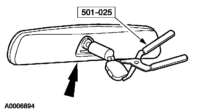 1. Place the interior mirror on the windshield bracket. Using the special tool, press the mirror in place until it is fully seated.