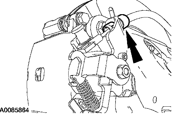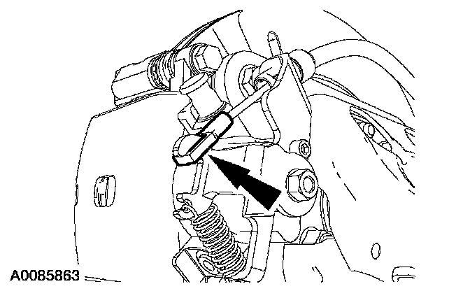 3. If removing the brake caliper, disconnect the parking brake cable and conduit from the brake caliper.