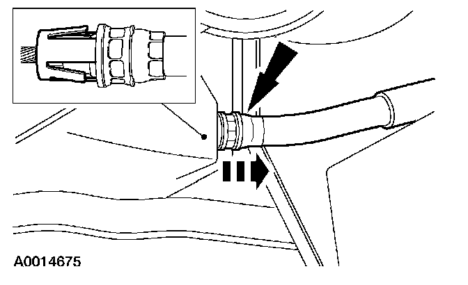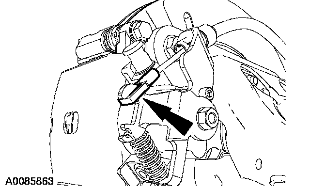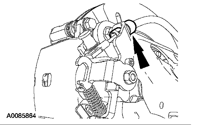 4. If removing the cable assembly, position the cable guide through the floor pan and disconnect the cable assembly from the parking brake control.
