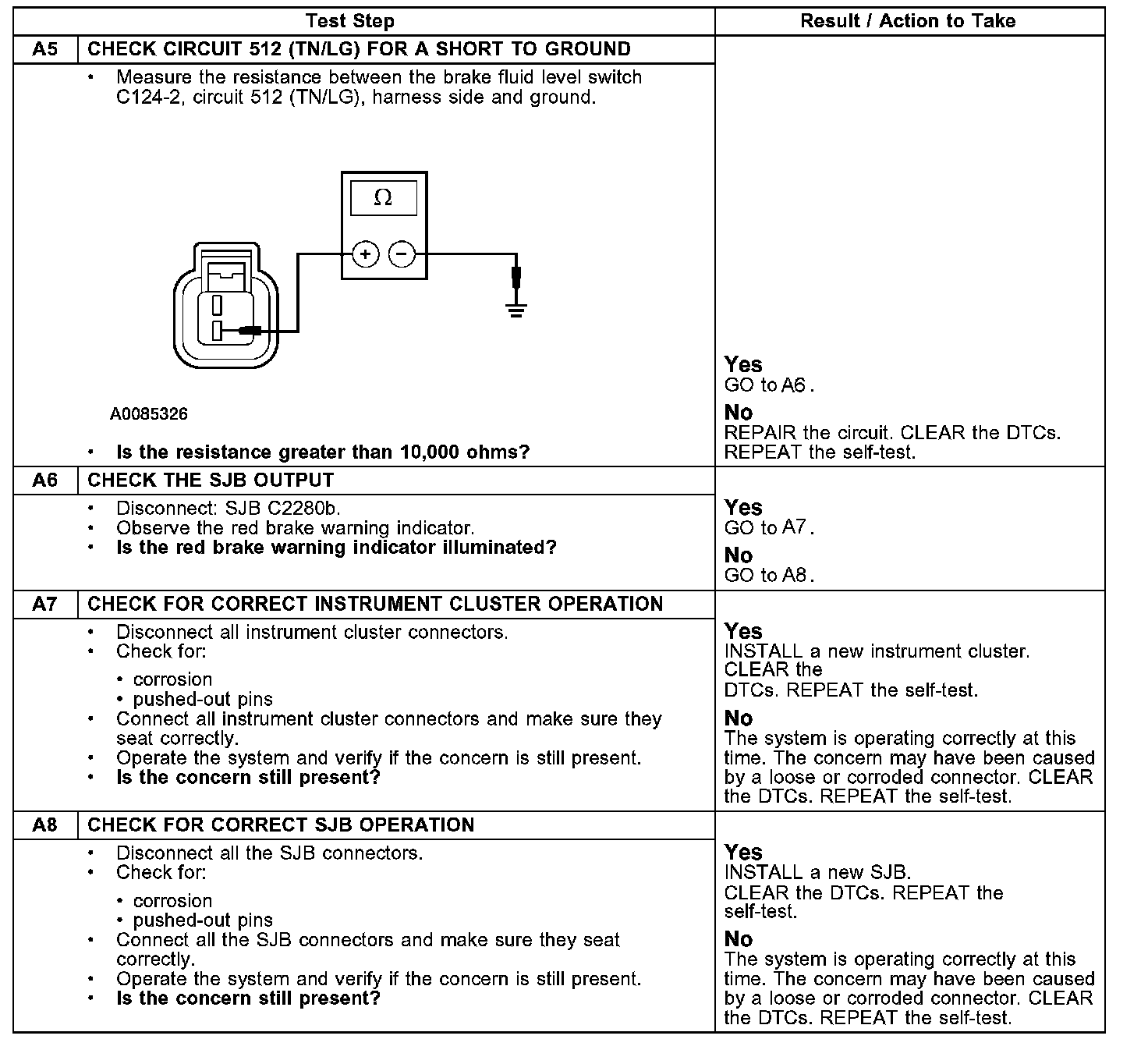 Pinpoint Test A: The Red Brake Warning Indicator Is Always OnTest A1-A4: