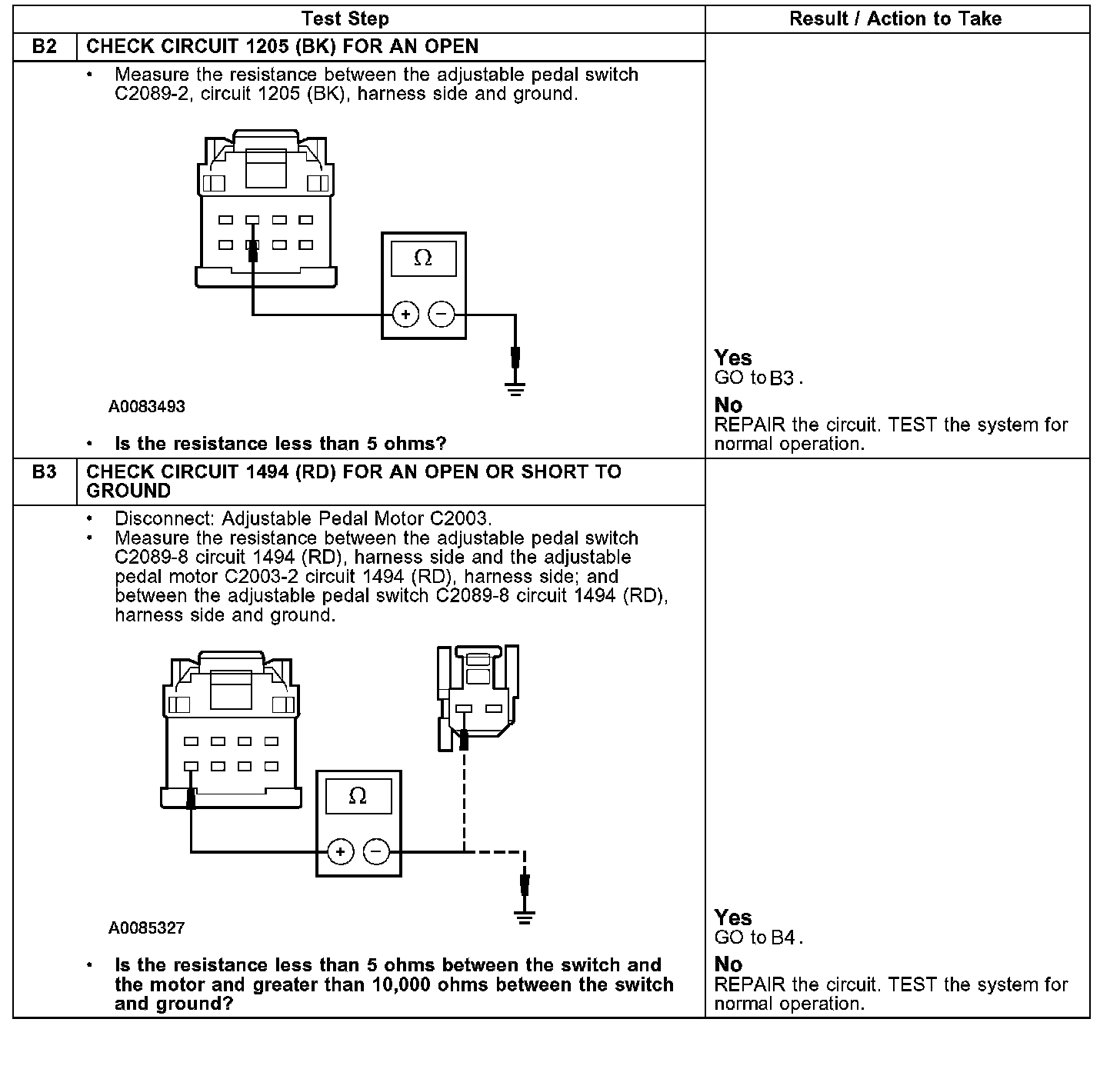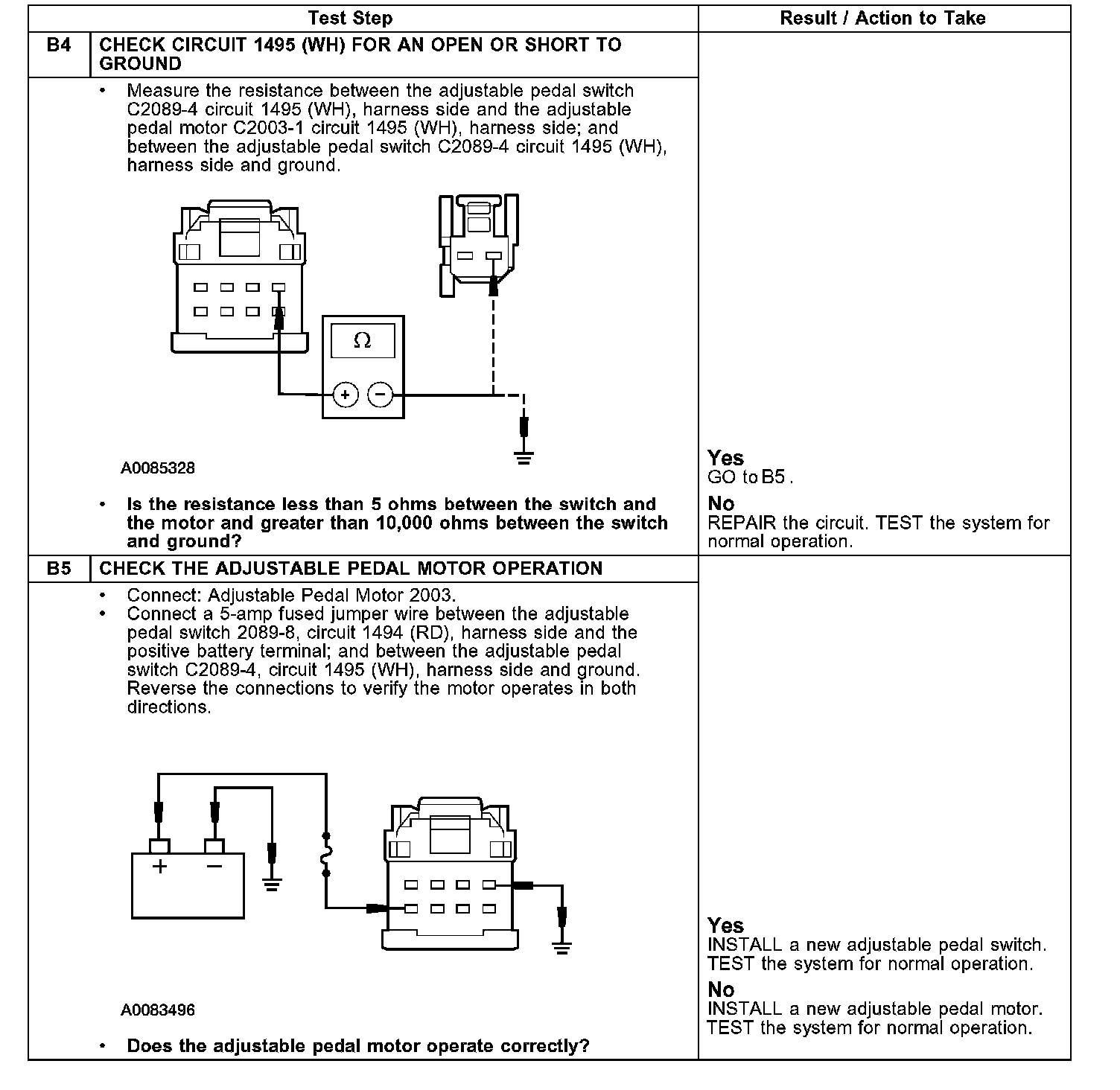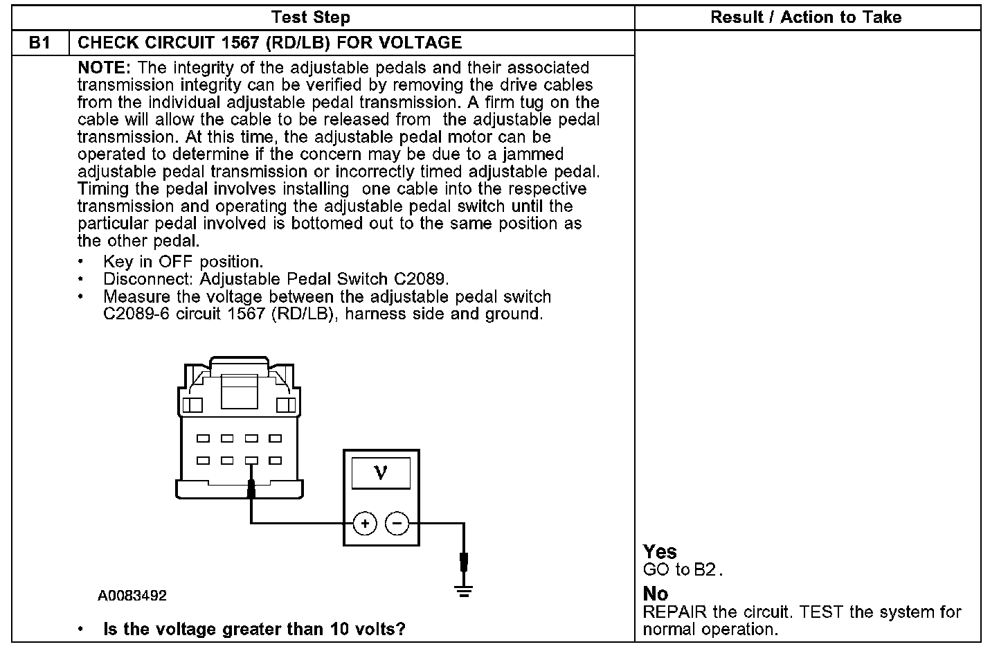 Pinpoint Test B: Adjustable Brake Pedal Is Inoperative/Does Not Operate Correctly- Without MemoryTest B1: