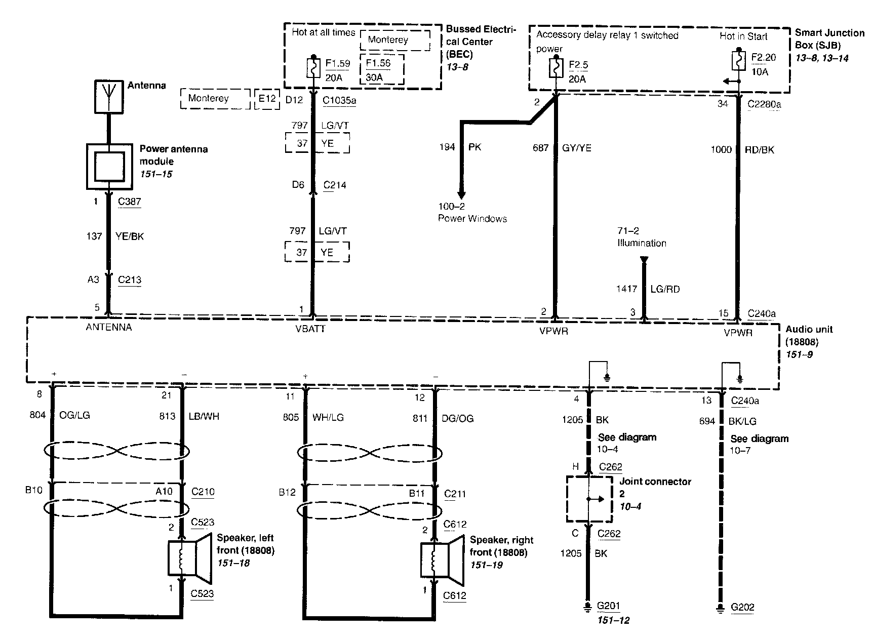 Locations: Location Views (reference numbers starting with 151-) referred to within these diagrams can be found at Component Location Views. Component Location Views