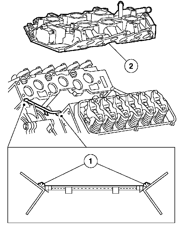 1. Apply a bead of silicone gasket and sealant to the lower intake manifold mounting points (at the front and rear seal).