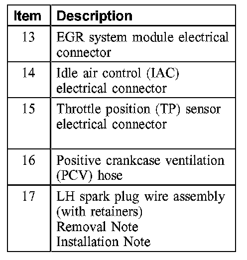 Item 17: LH Spark Plug Wire Assembly Removal Note