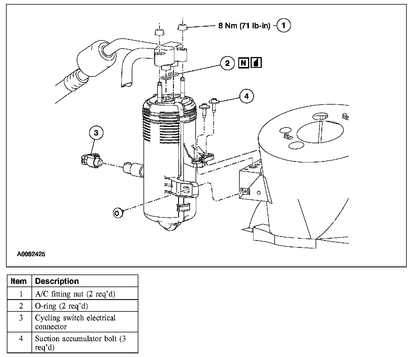 - Installation of a new suction accumulator is not required when repairing the air conditioning system, except when there is physical evidence of system contamination from a failed A/C compressor or damage to the suction accumulator.