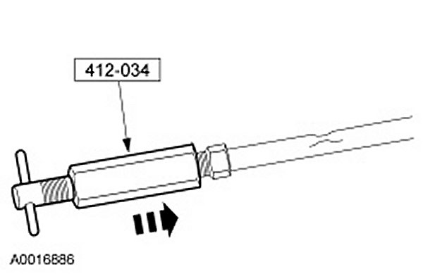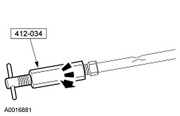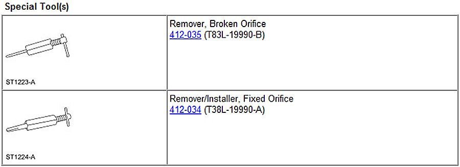 5. If the evaporator core orifice is intact, engage the special tool. Hold the T-handle stationary while rotating the tool body to remove the evaporator core orifice.