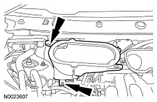 NOTE: Installation of a new suction accumulator is not required when repairing the air conditioning system, except when there is physical evidence of system contamination from a failed A/C compressor or damage to the suction accumulator.