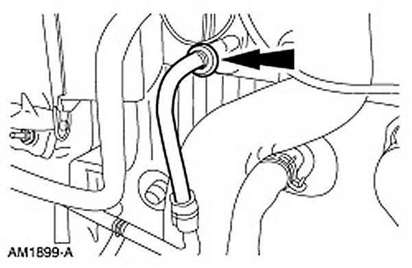 2. Disconnect the condenser-to-evaporator line fitting at the evaporator core.