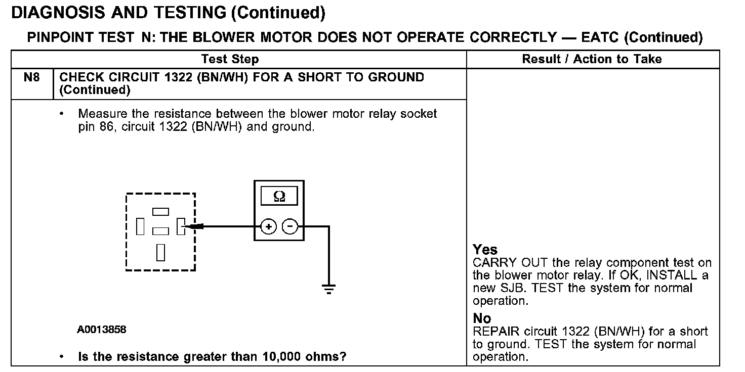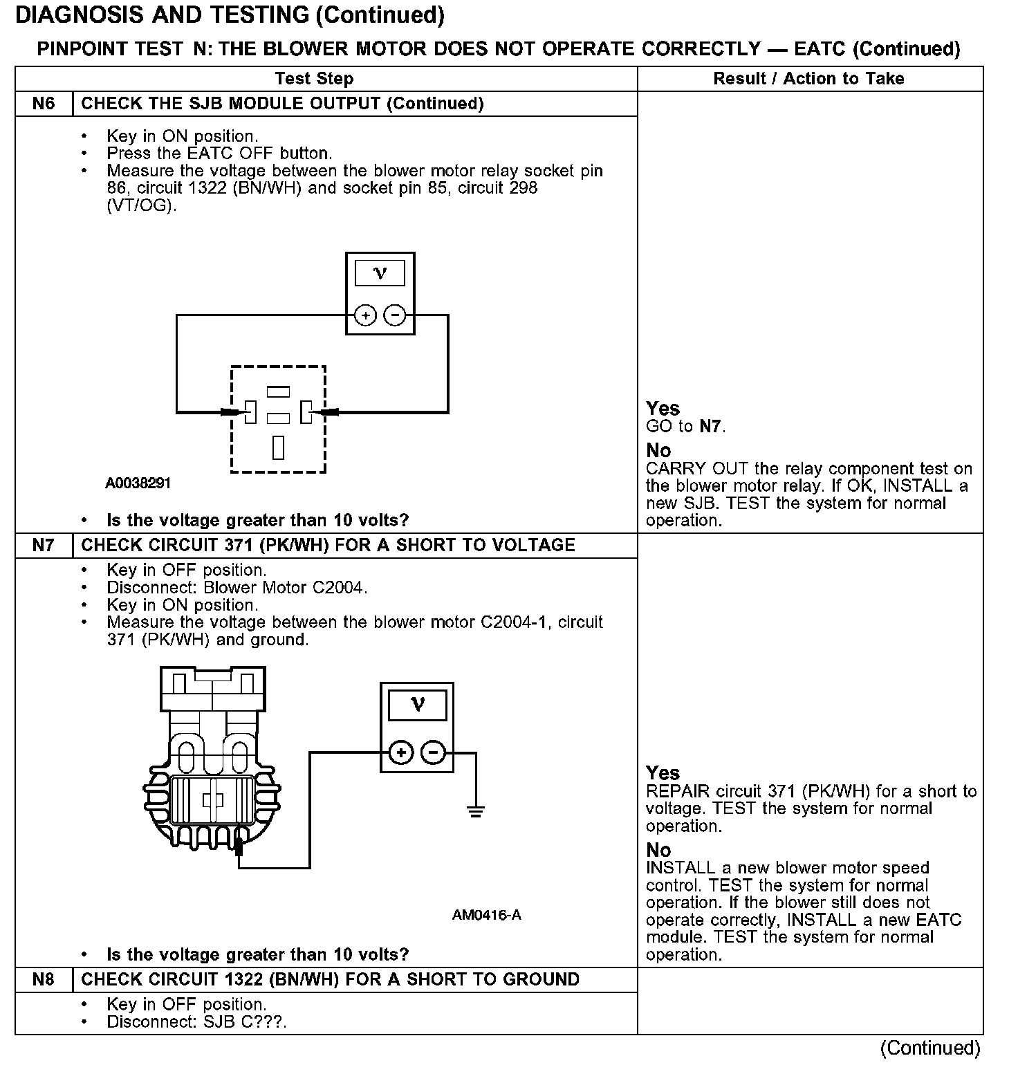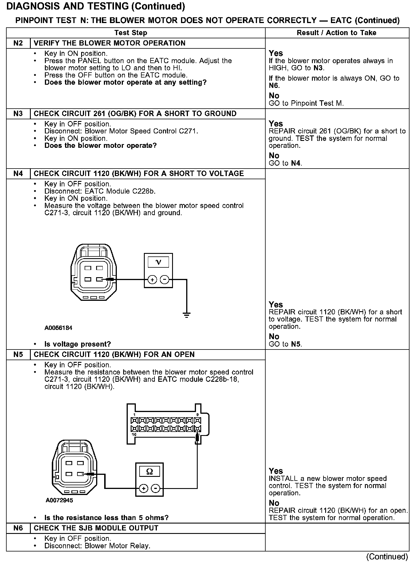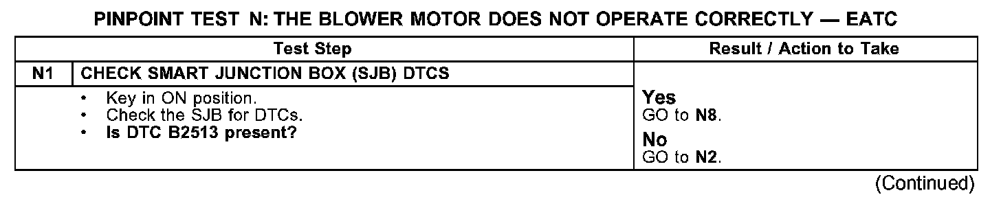 PINPOINT TEST N: THE BLOWER MOTOR DOES NOT OPERATE CORRECTLY - EATCTest N1: