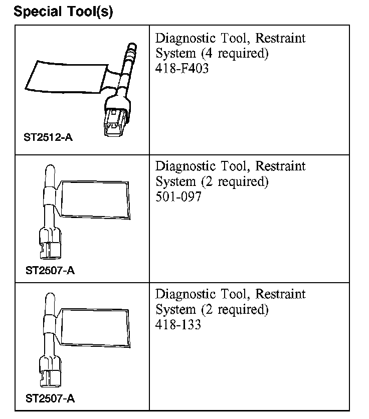 SUPPLEMENTAL RESTRAINT SYSTEM (SRS) DEACTIVATION AND REACTIVATIONSpecial Tool(s):