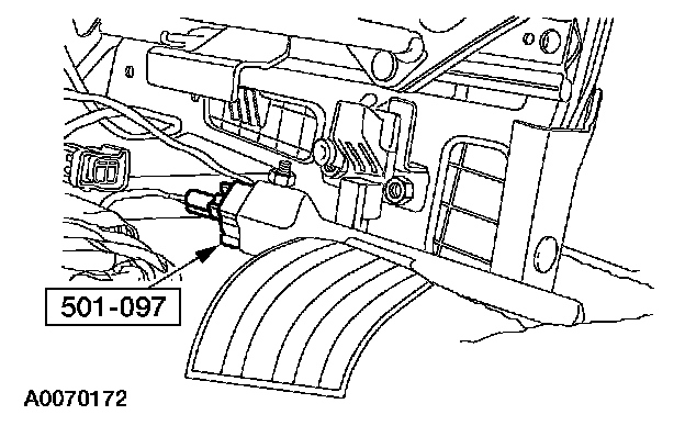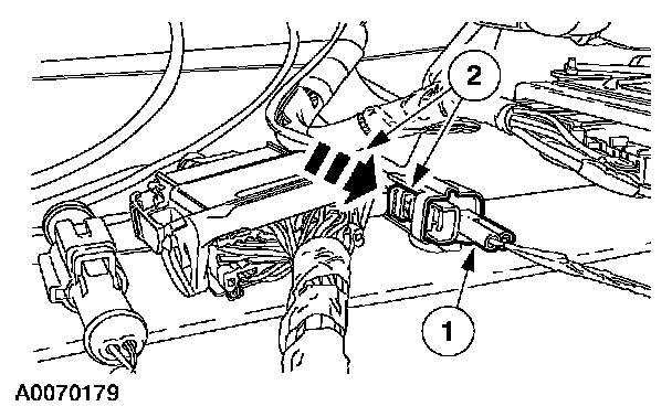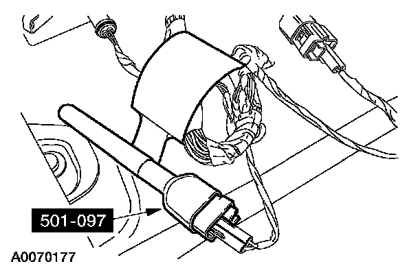 1. Remove the restraint system diagnostic tool from the vehicle harness side of the driver seat safety belt buckle pretensioner electrical connector.