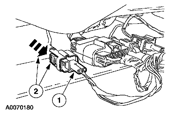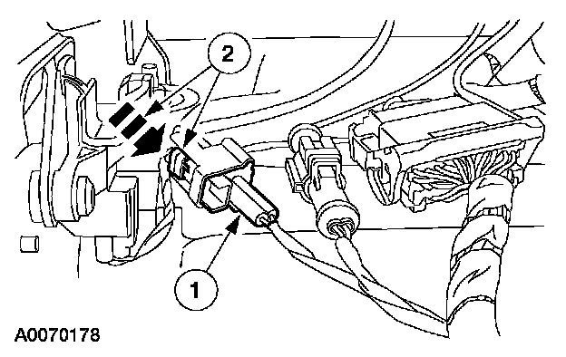 12. Remove the restraint system diagnostic tool from the vehicle harness side of the passenger seat safety belt buckle pretensioner electrical connector.