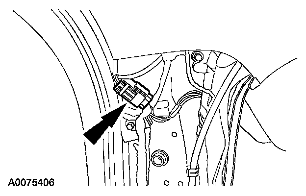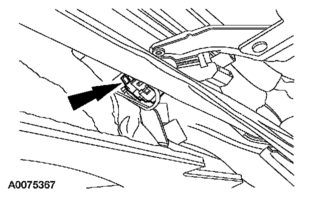6. From between the headliner and the roof of the vehicle, just to the front of the C-pillar, connect the driver side safety canopy module electrical connector.