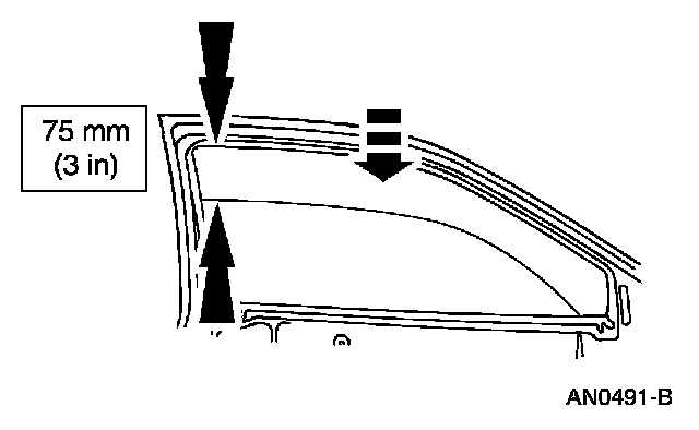 2. Partially lower the front door window glass to within three inches of the full up position.