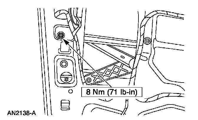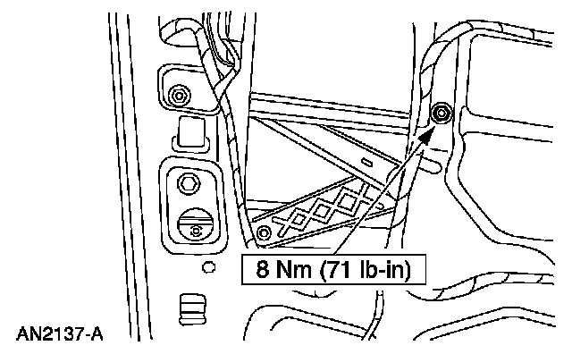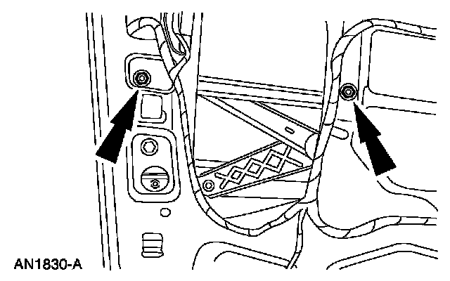 7. NOTE: If the hole is a vertical slotted hole, make sure that the nut and washer assembly is positioned at the bottom of the slot before downward pressure is applied to the window regulator equalizer arm bracket.