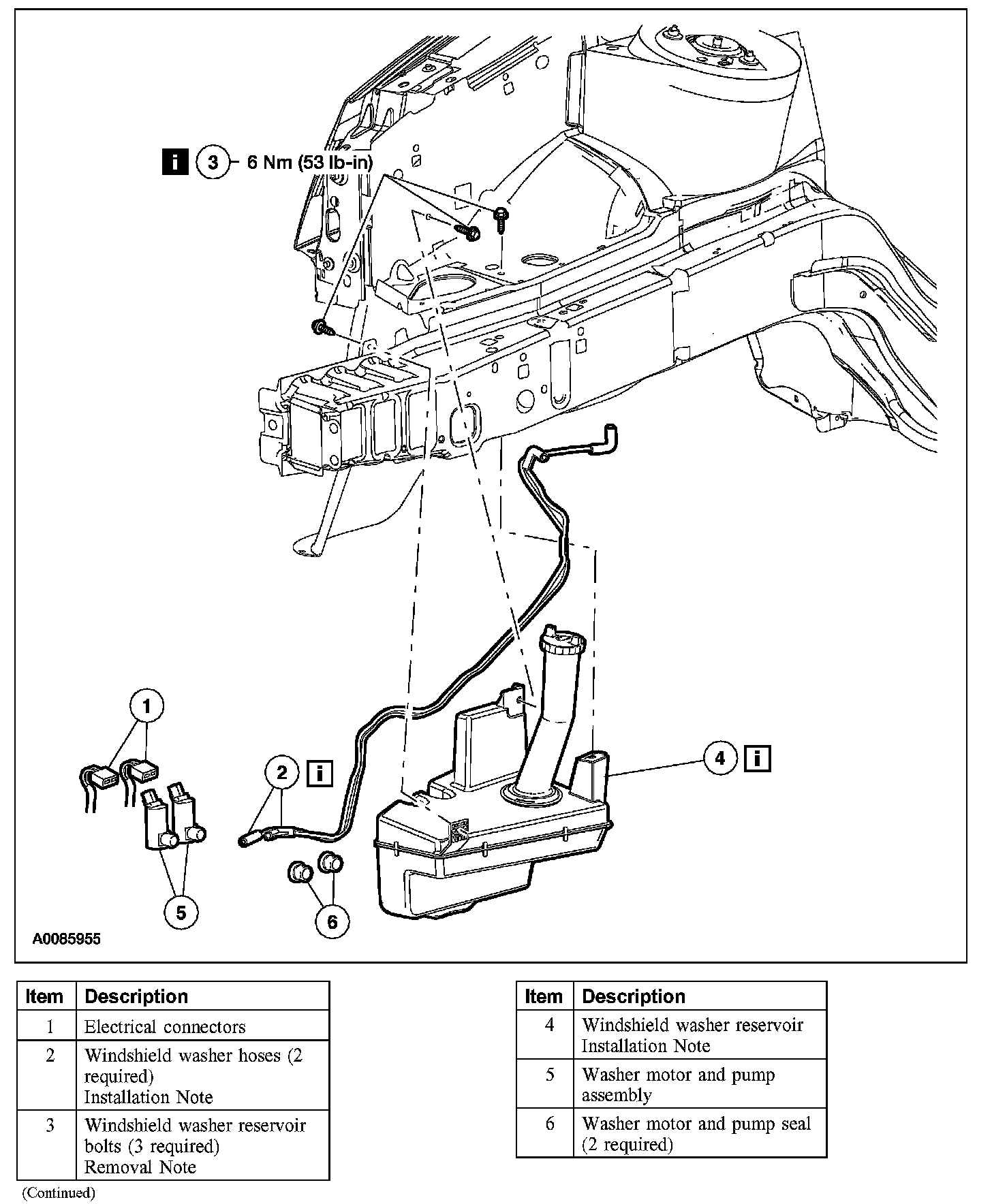 Item 2: Windshield Washer Hoses Installation Note