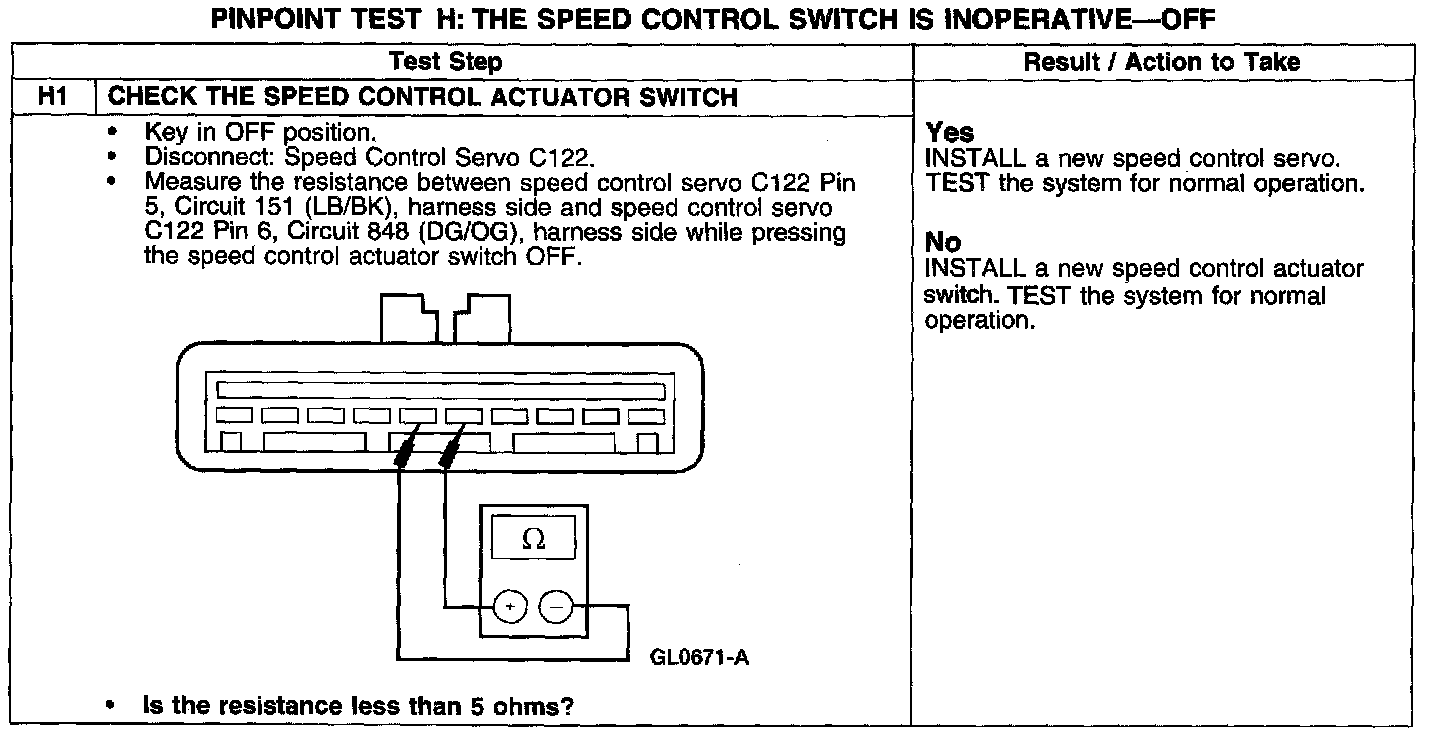 PINPOINT TEST H: THE SPEED CONTROL SWITCH IS INOPERATIVE - OFF