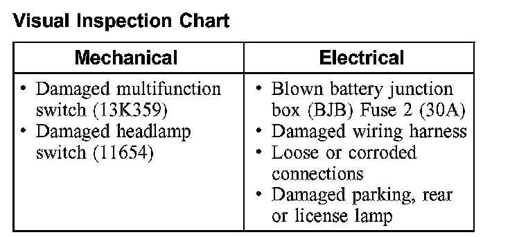 INSPECTION AND VERIFICATION1. Verify the customer concern by operating the parking lamps.