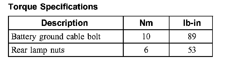 Torque Specifications: