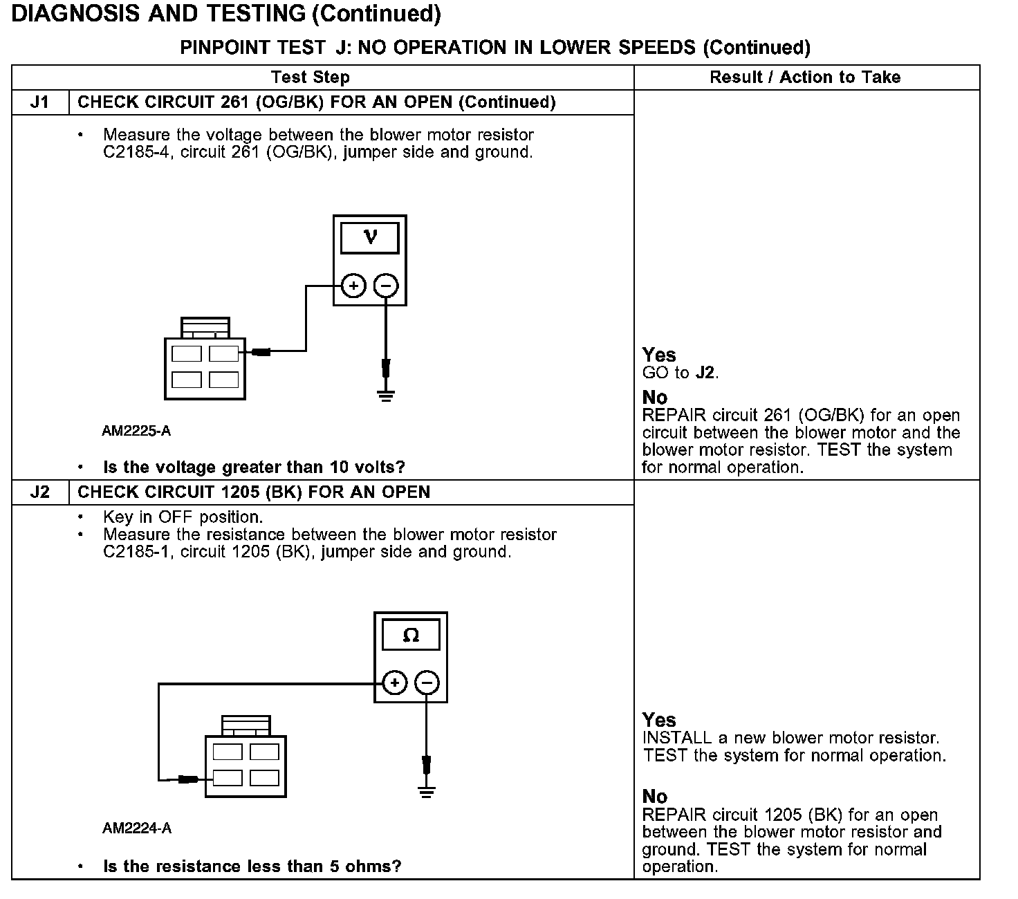 PINPOINT TEST J: NO OPERATION IN LOWER SPEEDS