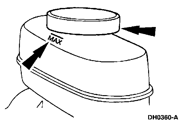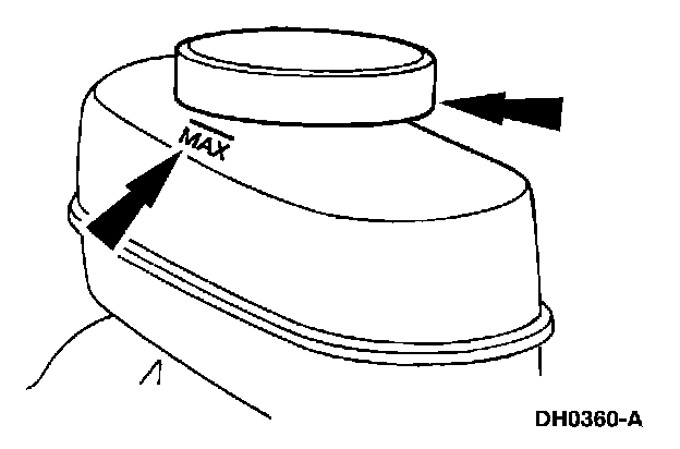 1. Clean all dirt from and remove the brake master cylinder filler cap and fill the brake master cylinder reservoir with the specified brake fluid.