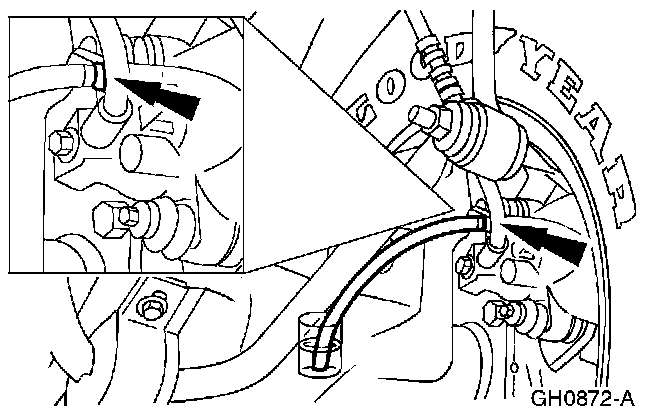 11. Repeat Steps 7, 8, 9 and 10 for the LH front disc brake caliper bleeder screw.