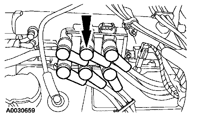 3. CAUTION: Spark plug wires must be connected to the correct ignition coil terminal. Mark spark plug wire locations before removing them.