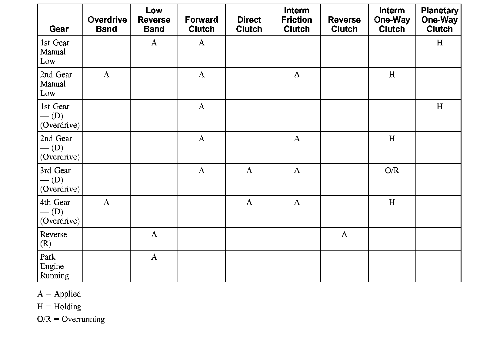 Band and Clutch Application Chart