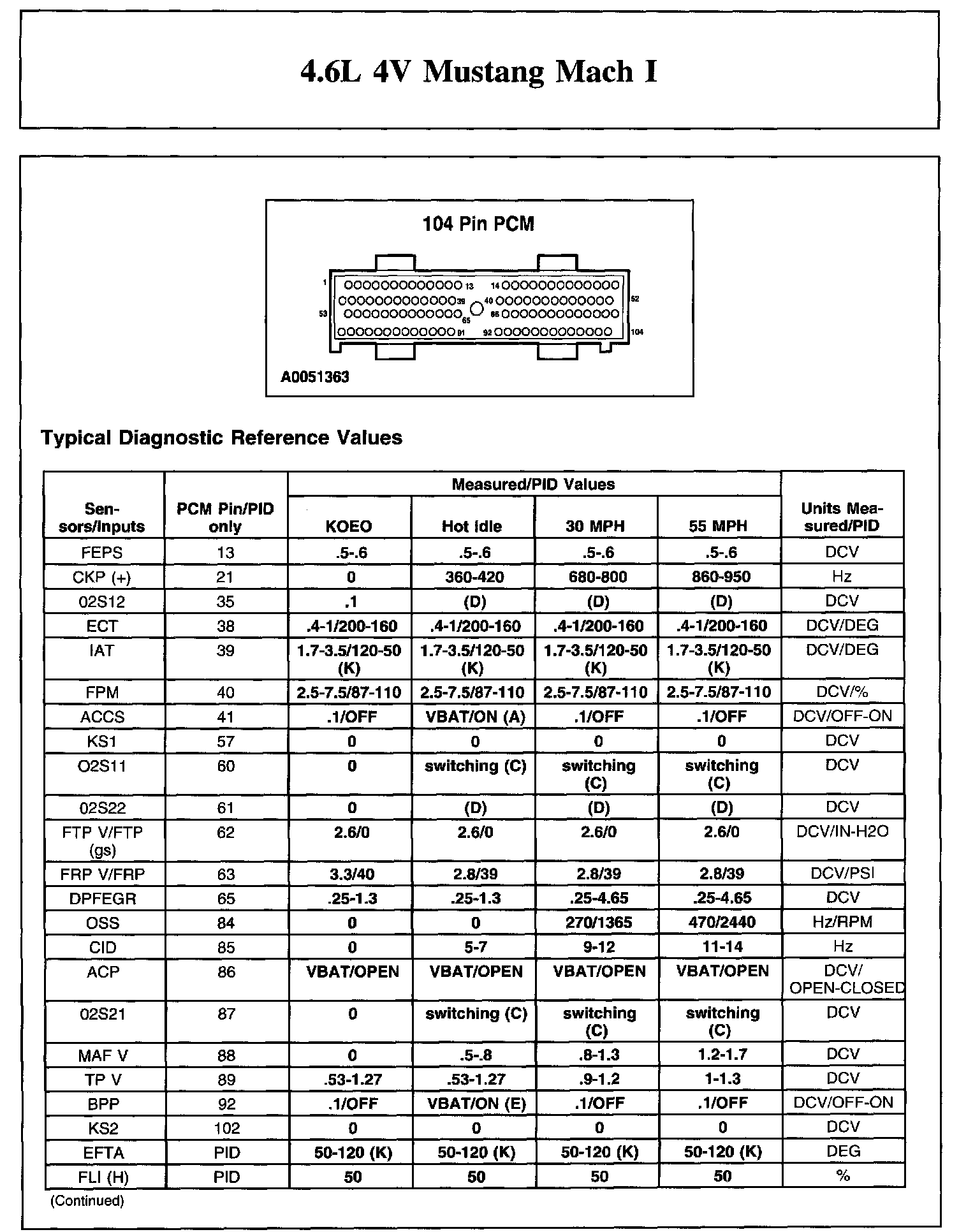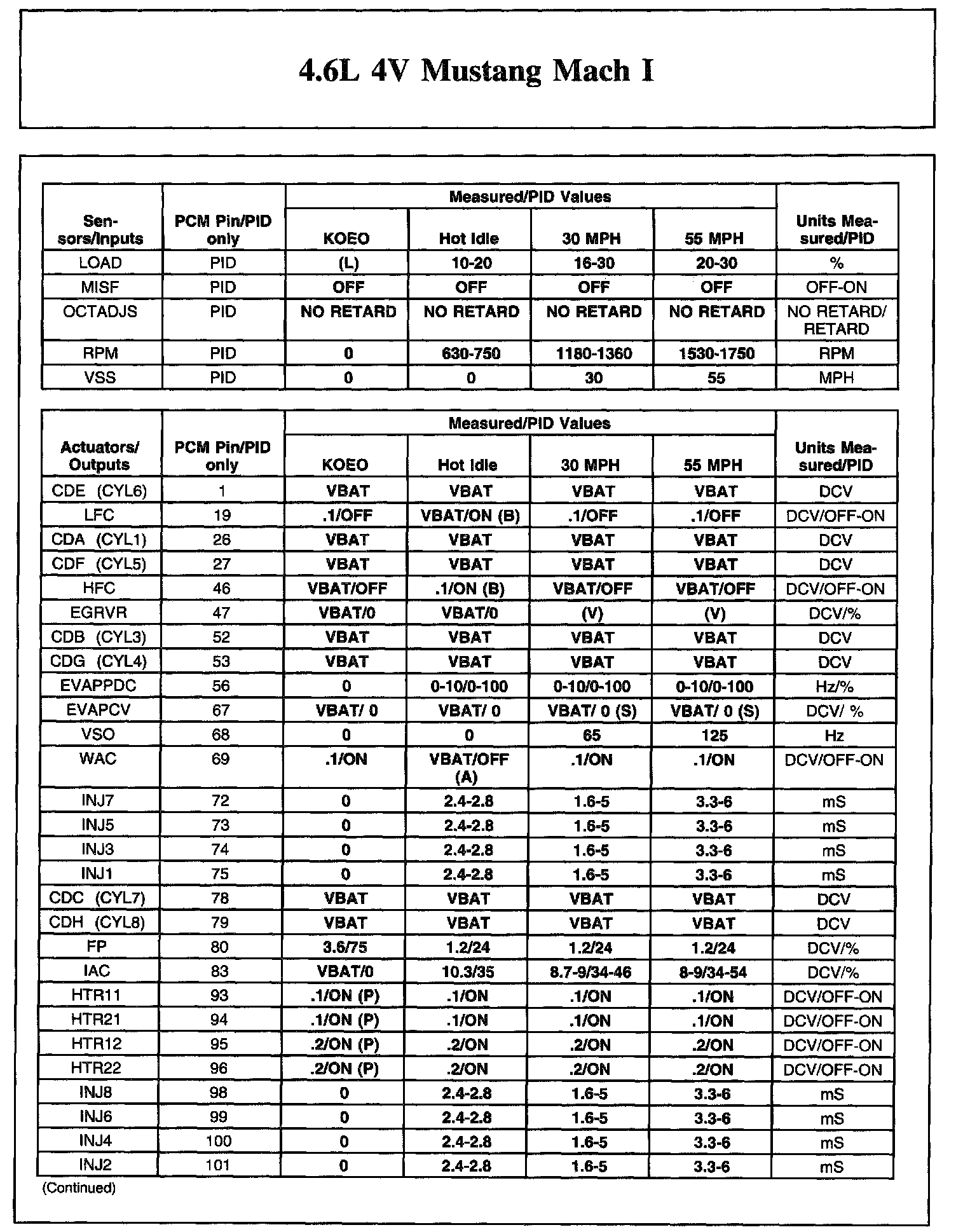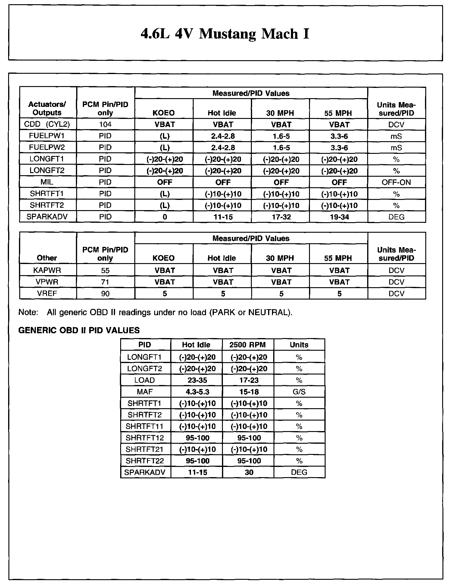 The Typical Diagnostic Reference Value Charts do not display fault PIDs. These are PIDs which indicate a hard fault with the circuit. They display a value of "YES" or "NO" and are PIDs ending with an "F".
