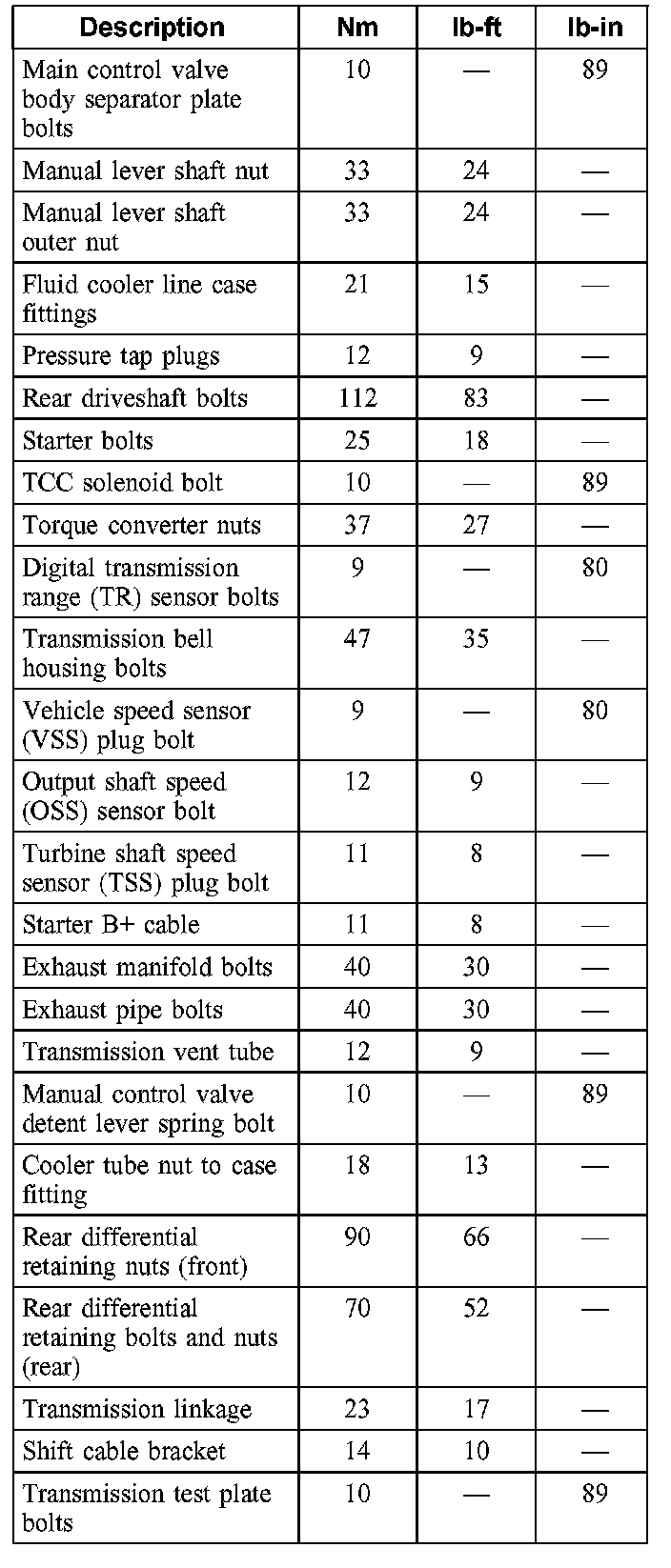 Torque Specifications