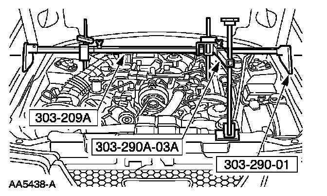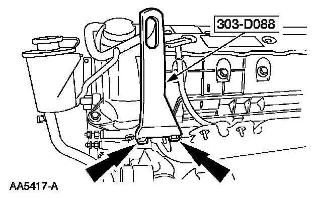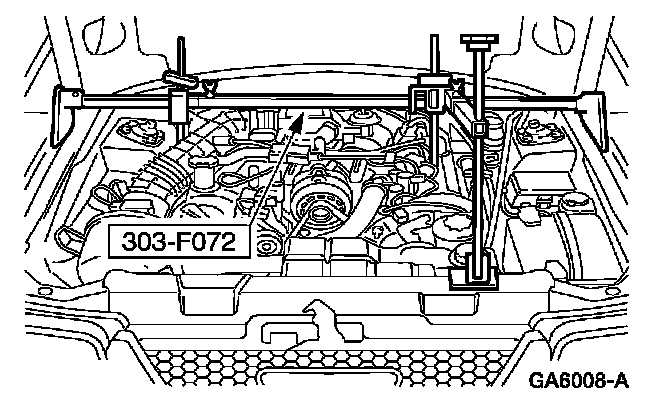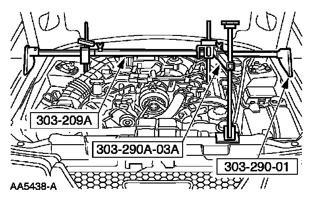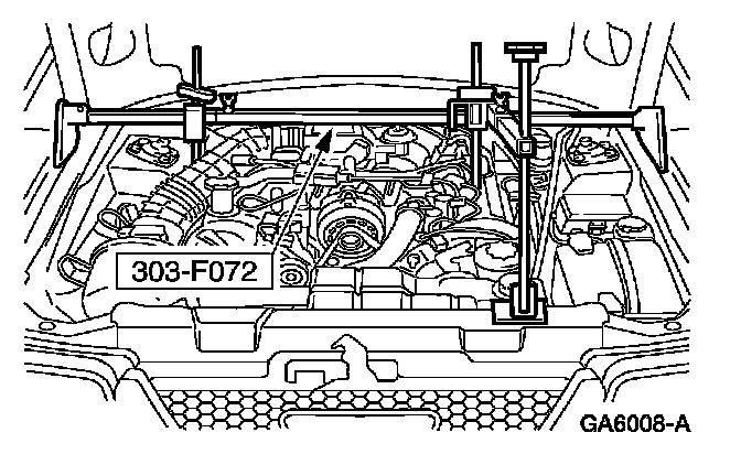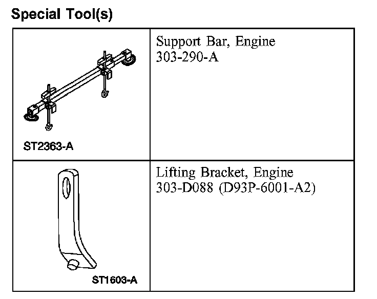11. Using the special tool, raise and support the engine.