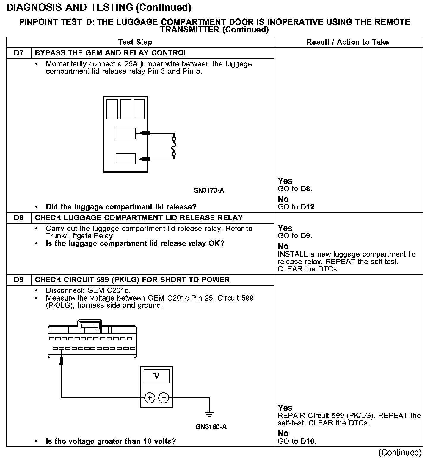 PINPOINT TEST D: THE LUGGAGE COMPARTMENT DOOR IS INOPERATIVE USING THE REMOTE TRANSMITTER