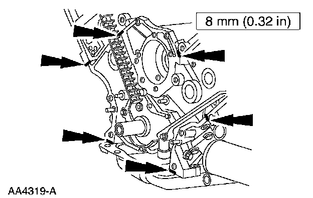 2. Install the engine front cover and tighten the fasteners in the sequence shown, to 25 Nm (18 ft. lbs.).