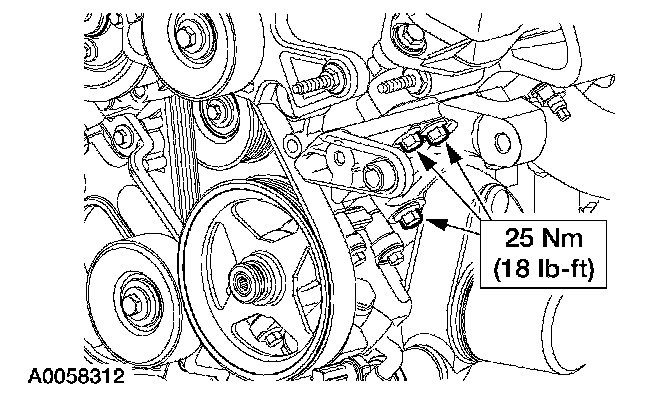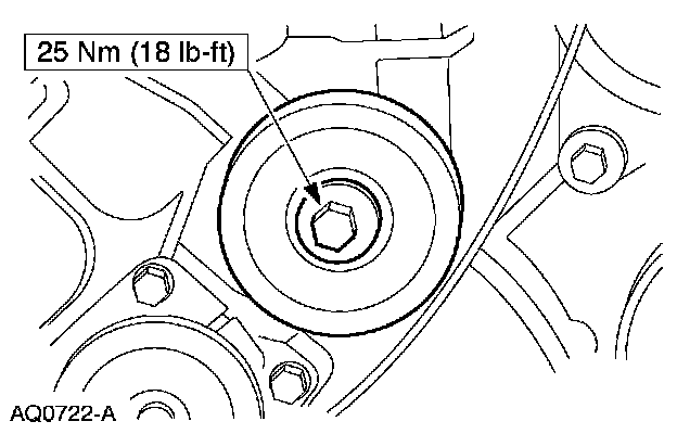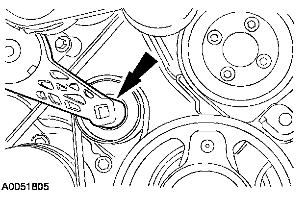45. Rotate the belt tensioner and install the accessory drive belt.