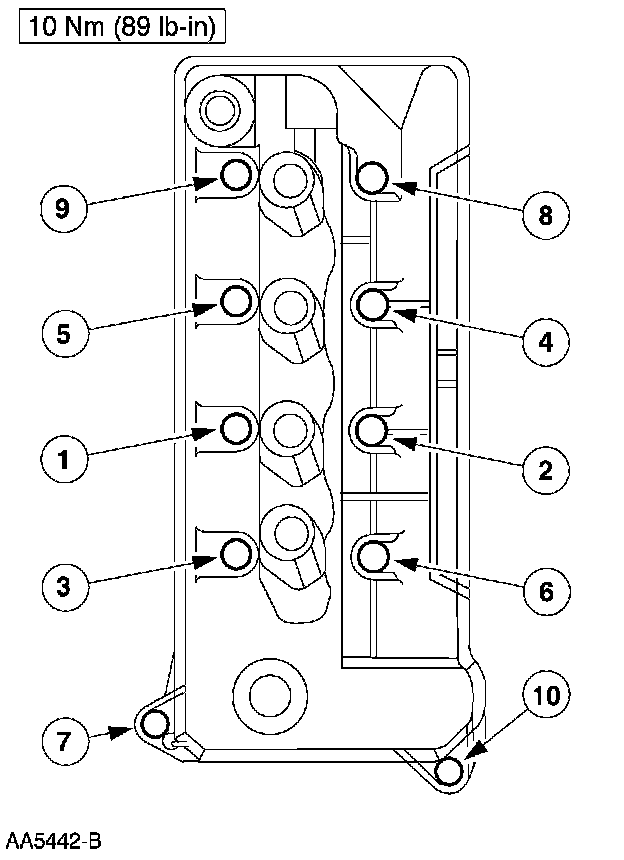 12. Tighten the LH valve cover bolts in the sequence shown.
