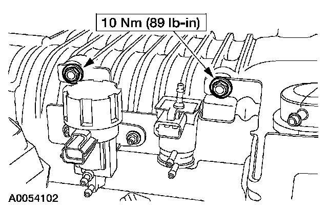 19. Connect the electrical connectors to the fuel pulse damper, EGR vacuum regulator solenoid, supercharger bypass vacuum solenoid, and the differential pressure feedback EGR system.