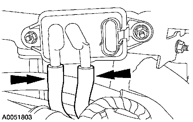 Install the two coolant bypass tube nuts.