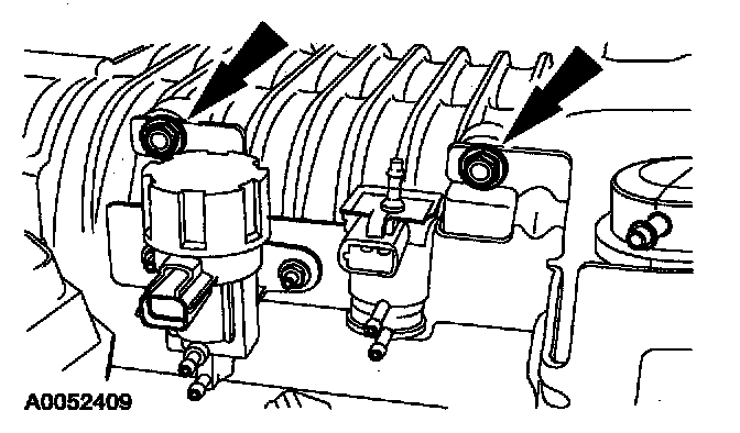 4. Disconnect the electrical connectors from the fuel pulse damper, EGR vacuum regulator solenoid, supercharger bypass vacuum solenoid, and the differential pressure feedback EGR system.