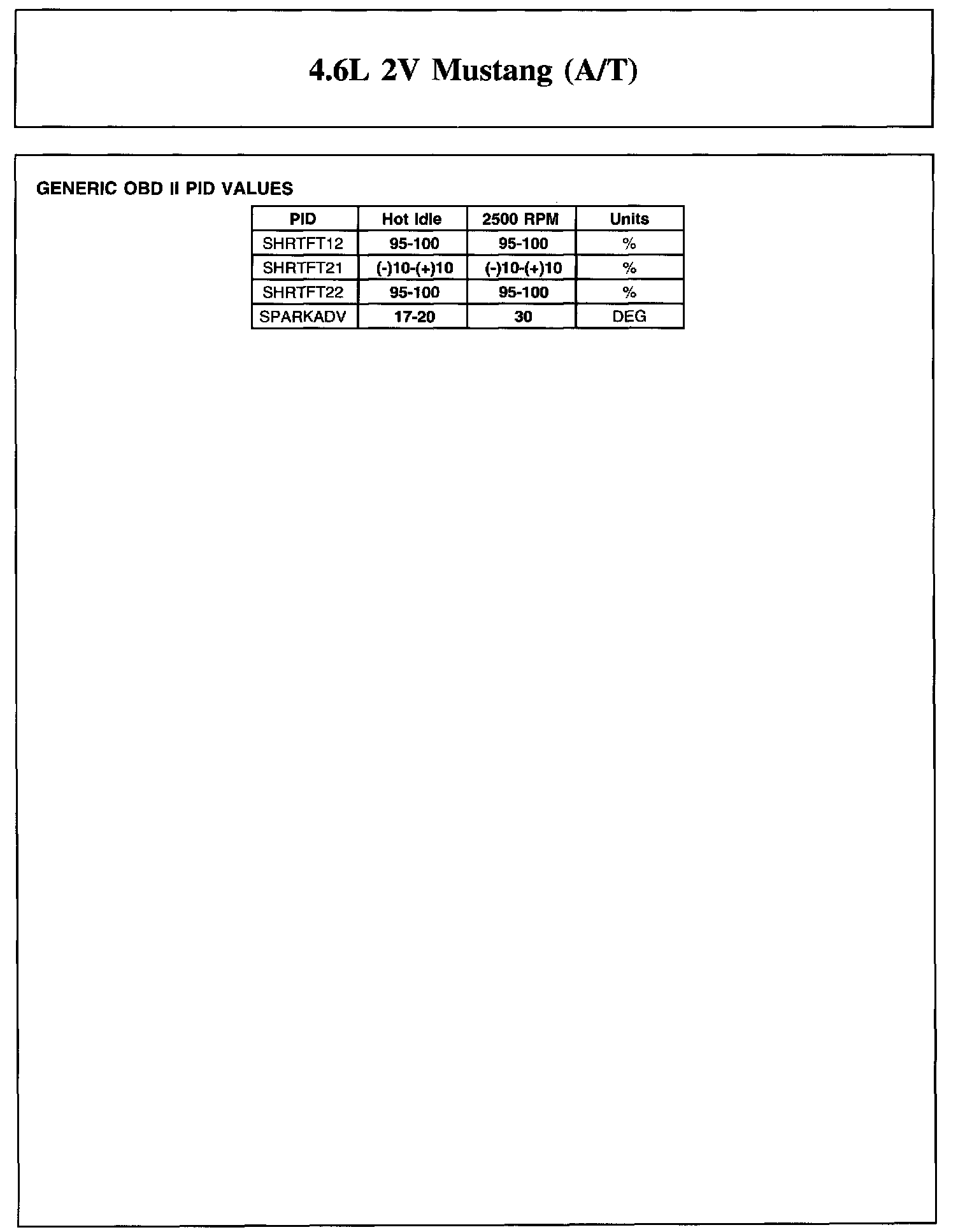 The Typical Diagnostic Reference Value Charts do not display fault PIDs. These are PIDs which indicate a hard fault with the circuit. They display a value of "YES" or "NO" and are PIDs ending with an "F".