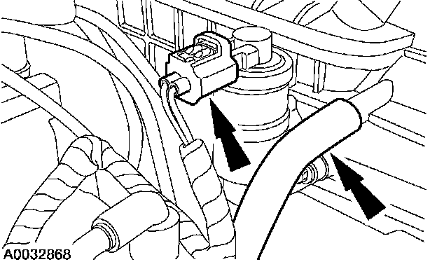 12. Connect the vapor purge hose and the IAC valve electrical connector.