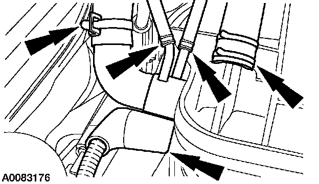 11. Connect the engine vacuum harness, brake booster hose and the crankcase breather hose. Connect the coolant hoses.